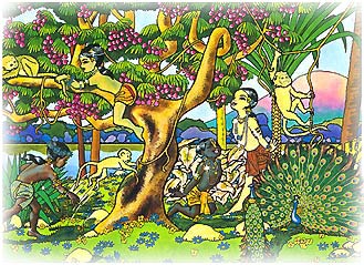 Einige sassen zusammen mit den Kranichen und andere tanzten mit den Pfauen. Einige imitierten das Rufen des Kukuks: “Kukuk! Kukuk!“.