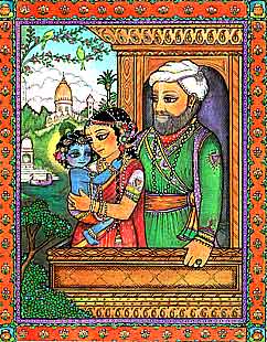 Zusammen mit seiner Mutter Yashoda und seinem Vater Nanda Maharaja lebte er glücklich im schönen Dorf Vrindavan.